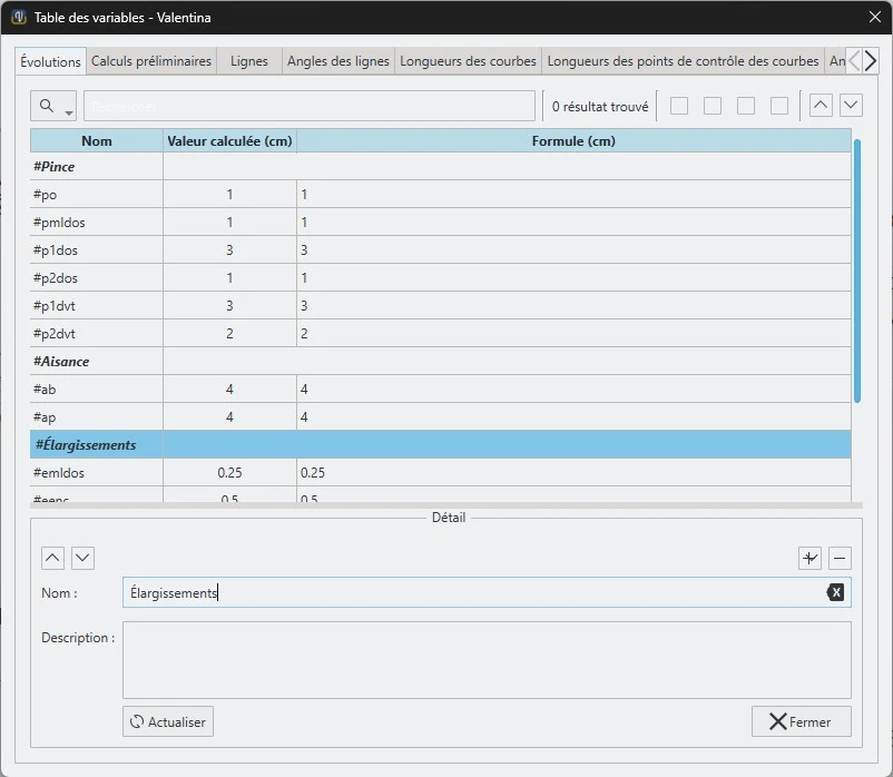 - Les variables de confort : Aisances de poitrine, de taille et de hanches. En paramétrant ces données dans le tableau des variables de Valentina, je m’assure qu’une simple modification de la variable «