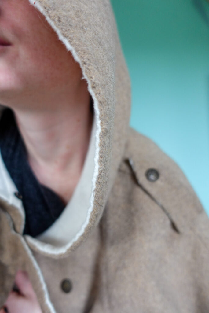 J’ai décidé de réaliser le modèle tel quel. La cape n’est donc pas totalement réversible au niveau de l’ouverture, mais j’aurais pu ajouter des boutons à l’intérieur pour la rendre réversible.